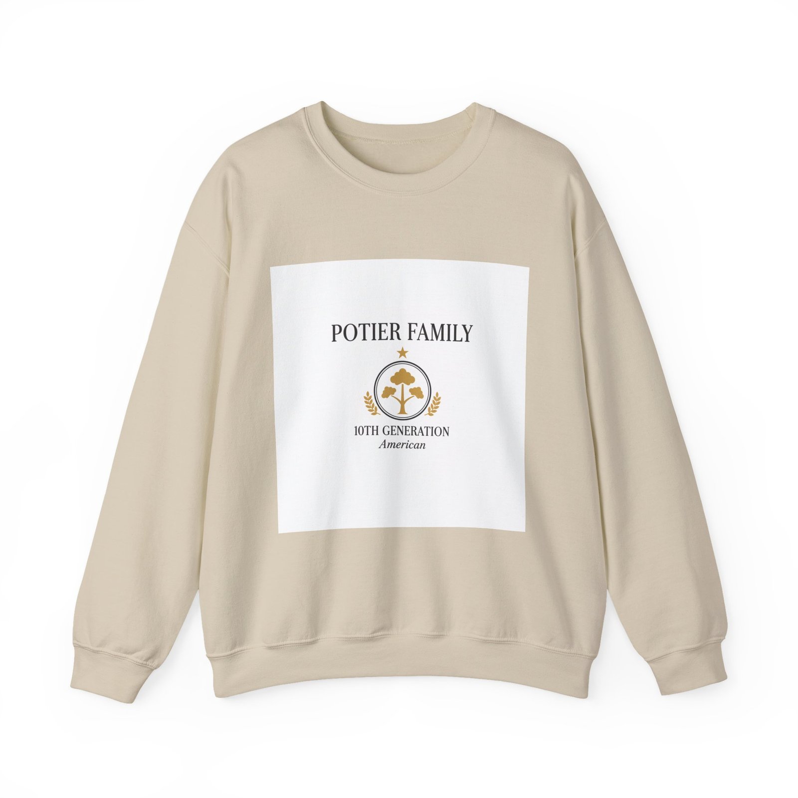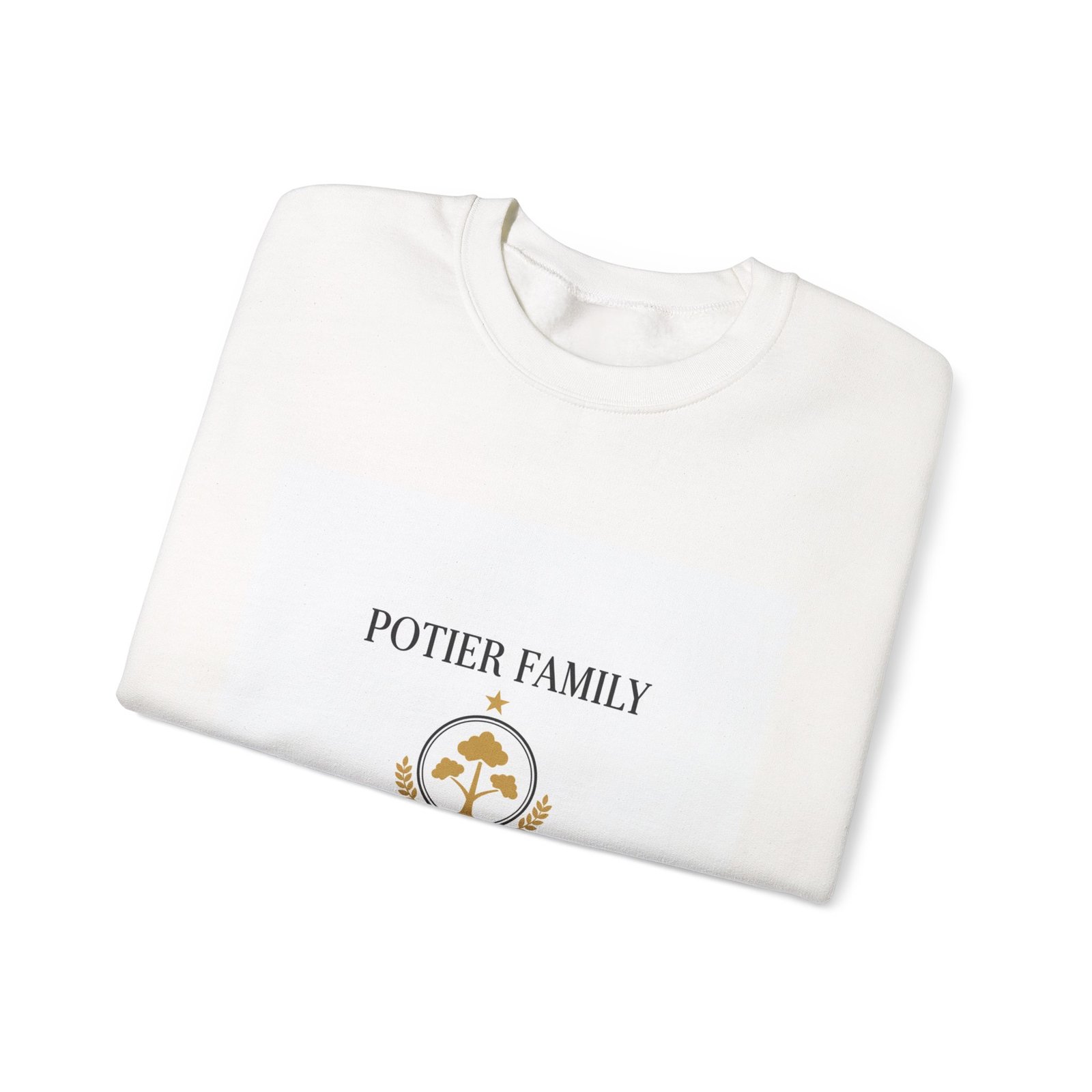 A pared-back crewneck sweatshirt with a small, centered embroidered crest and refined serif lettering in muted neutral tones. The design reads as understated and archival — a quiet-luxury motif that layers easily within a capsule wardrobe. Subtle embroidery and a clean cream palette make this a deliberate, low-key piece for those who favor minimalist logo shirts and premium basics.